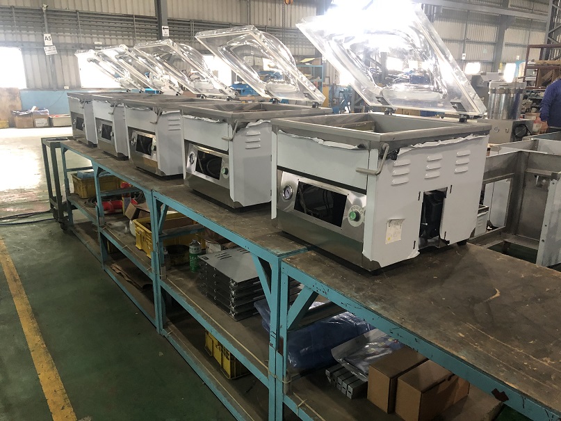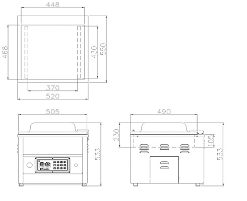 The model TC-420LR is one of our most popular table top vacuum chamber sealer models. The ”LR” in the model number lets you know that this machine features two seal bars, one on the right and one on the left side of the vacuum cavity area. Like all UMPACKT chamber vacuum sealers this machine is ETL tested and certified and labeled as meeting UL and CSA safety standards for packaging equipment as well as NSF sanitary standards. This rugged functional machine utilizes an all #304 stainless steel housing and vacuum cavity and features a Busch(model RB0021) vacuum pump for reliable and powerful vacuum performance.